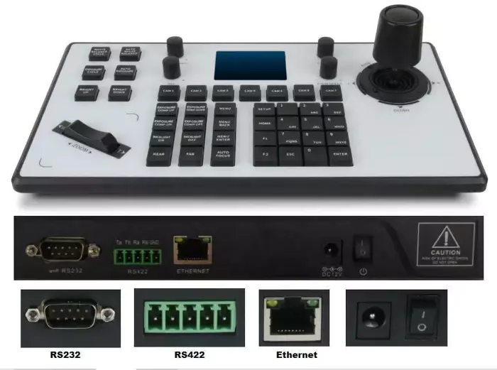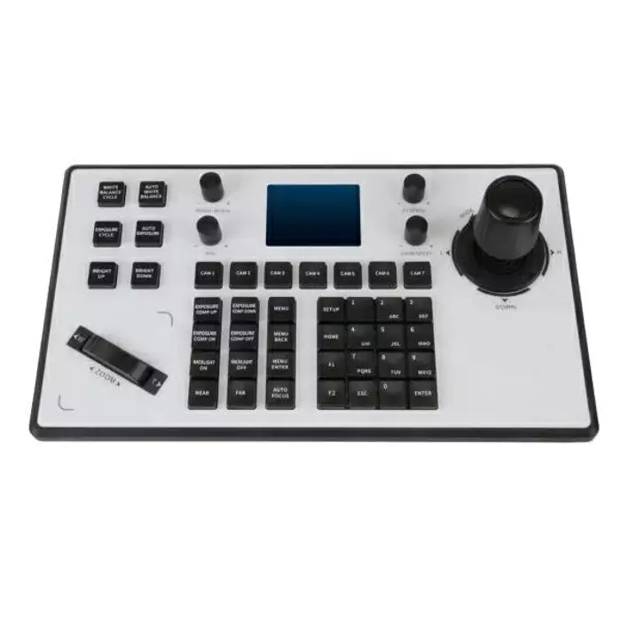 Kontroler w formie joysticka 4D do sterowania kamerami PTZ. Wspiera najpopularniejsze standardy: RS232/RS422/IP/Pelco-P/Pelco-D/Visca port szeregowy VISCA, PELCO-D / P itp.