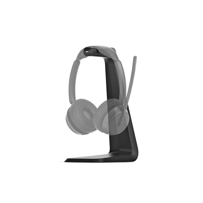 Łatwa w użyciu i intuicyjna podstawka do indukcyjnego ładowania zestawu słuchawkowego IMPACT 1000. Zachowaj porządek na biurku, ładując zestaw słuchawkowy bez użycia kabli. Wystarczy umieścić zestaw słuchawkowy Impact 1000 Bluetooth® na podstawce ładującej, aby automatycznie go naładować.