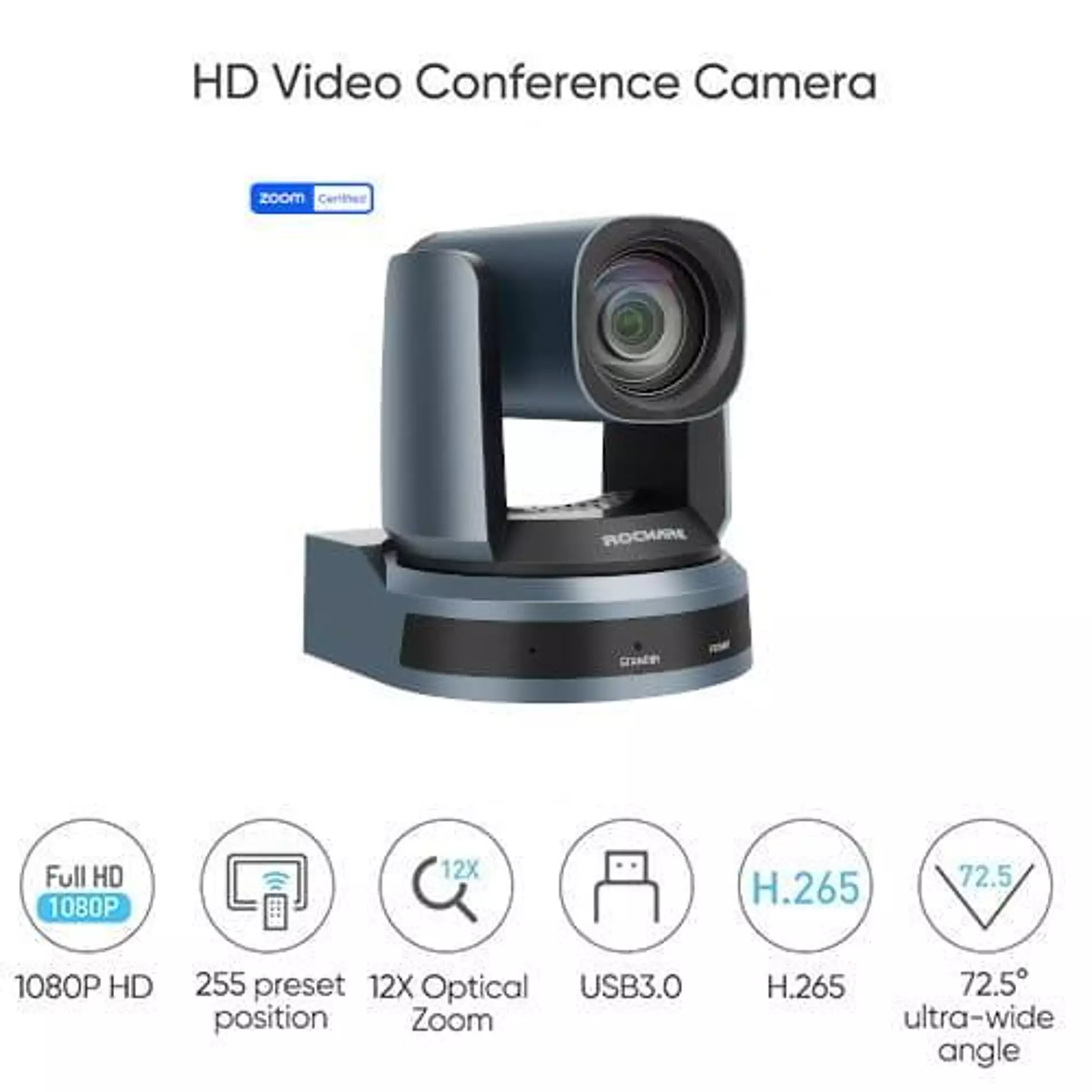 ROCWARE RC821U - Kamera PTZ, 12x zoom optyczny i 16-krotny zoom cyfrowy, certyfikacja dla Zoom